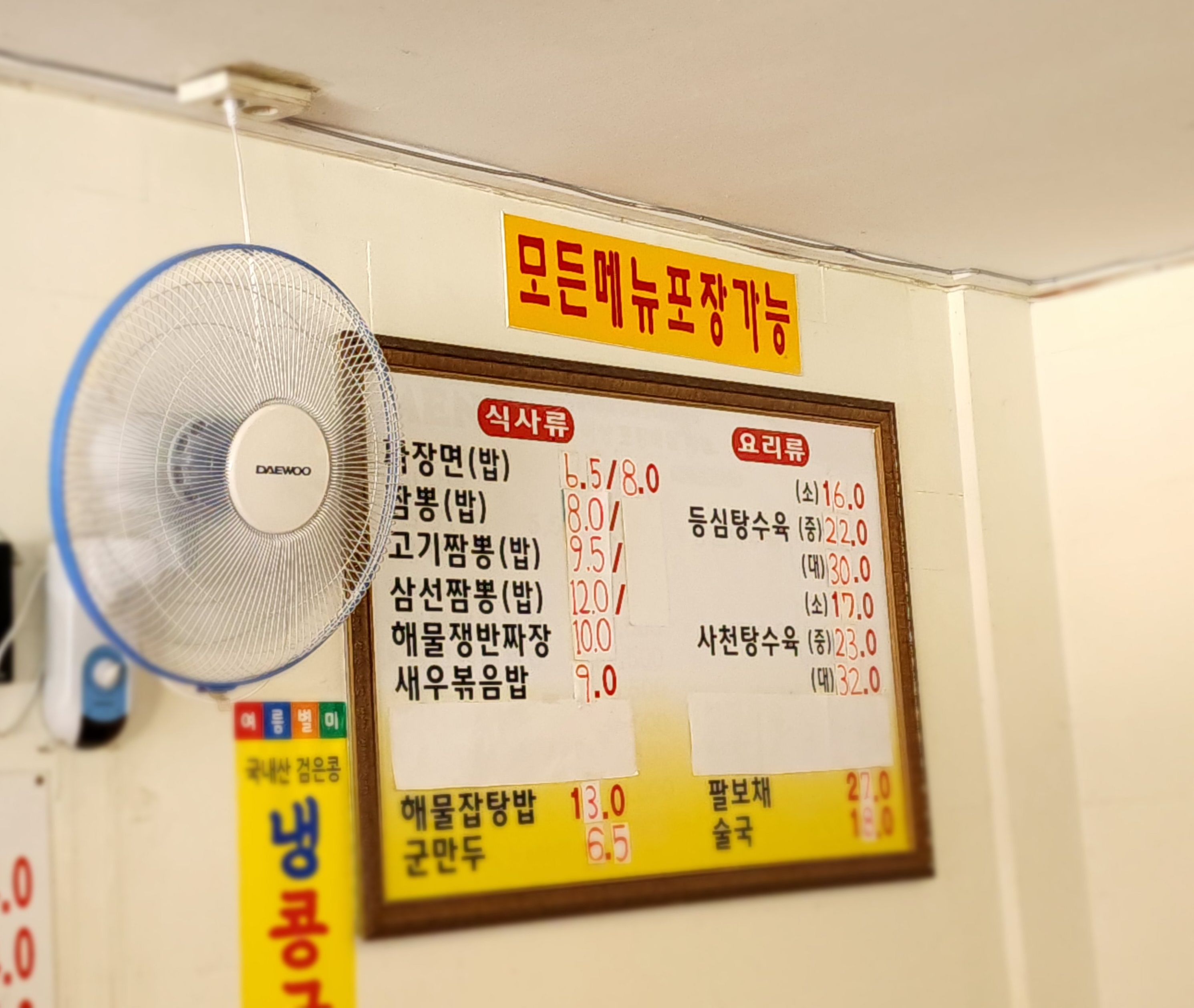 메뉴판 정보.